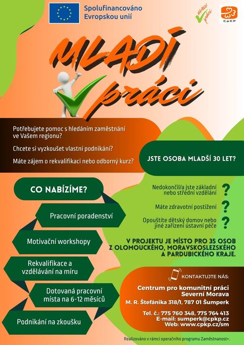 Pokud ano, zapojte se do projektu Centra pro komunitní práce Severní Morava a získejte rekvalifikaci, pracovní poměr na dobu 6 - 12 měsíců, nebo si přijďte vyzkoušet podnikání. Právě pro Vás nabízíme spektrum aktivit vedoucích k získání pracovní pozice dle Vašich představ.